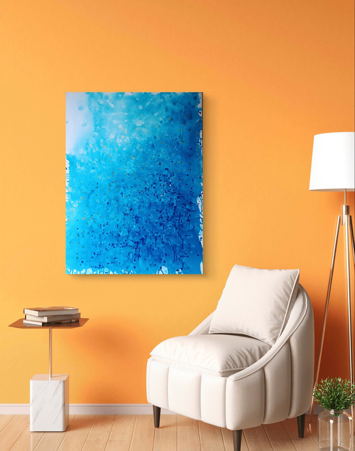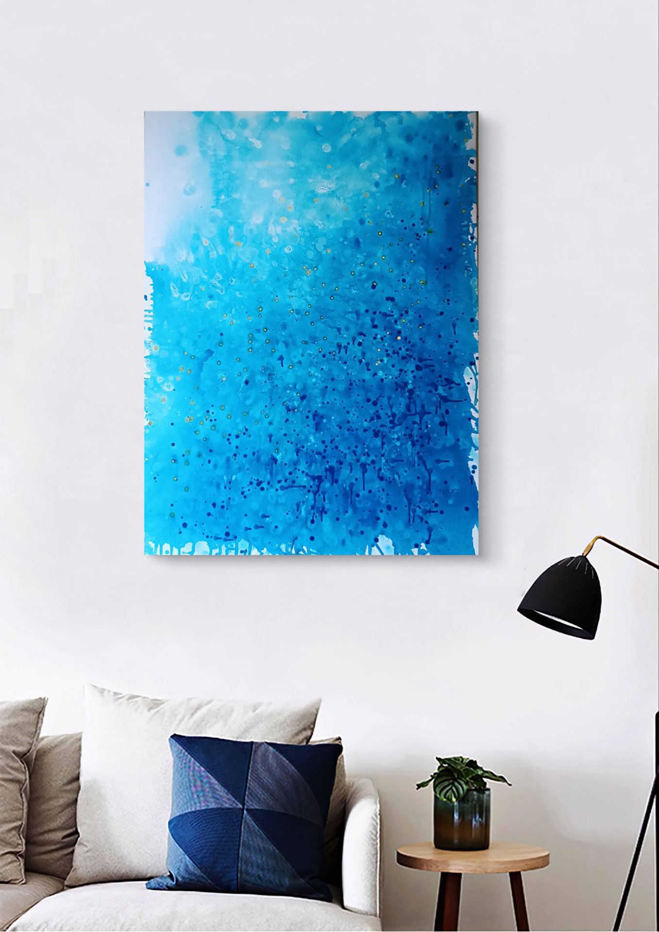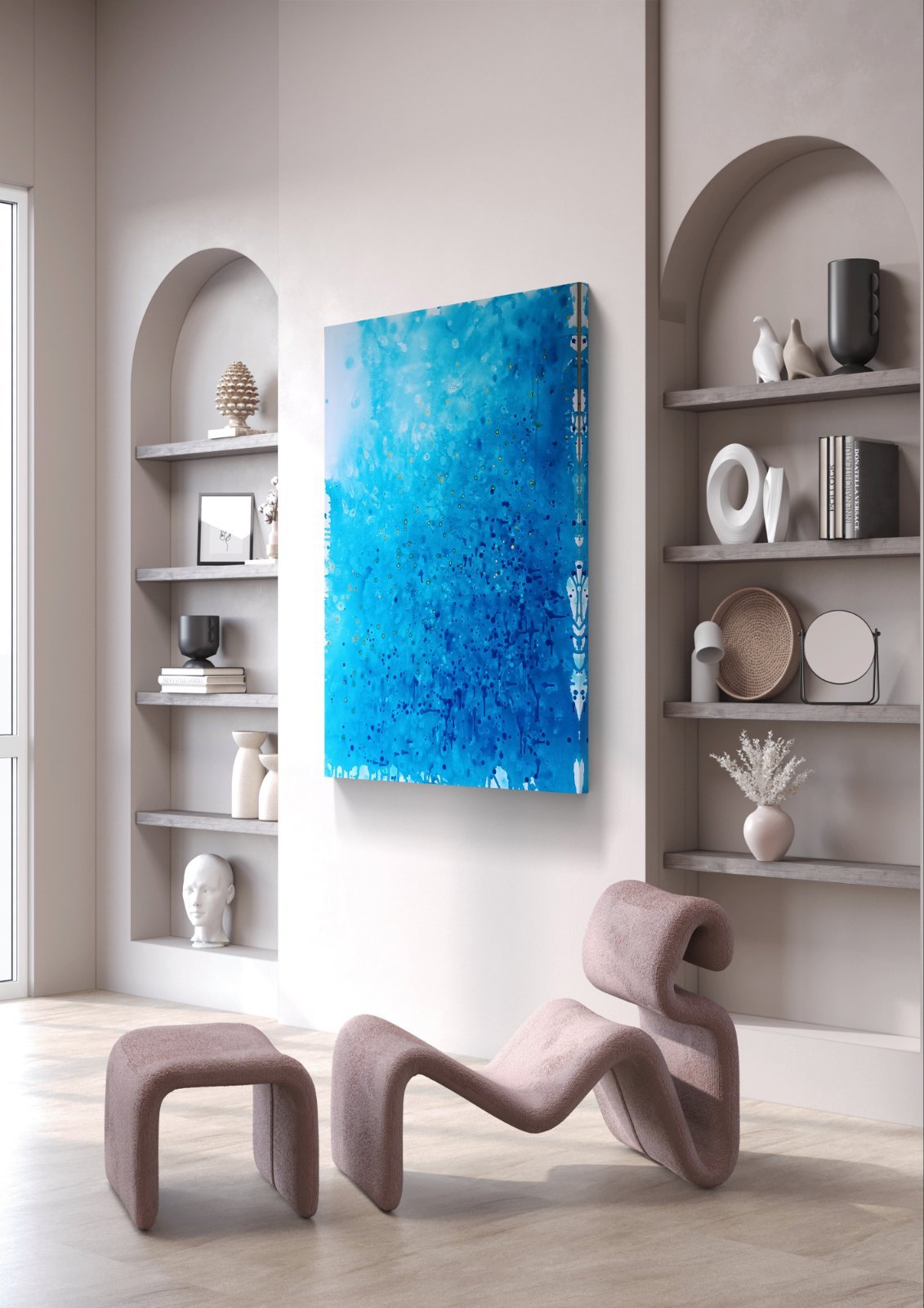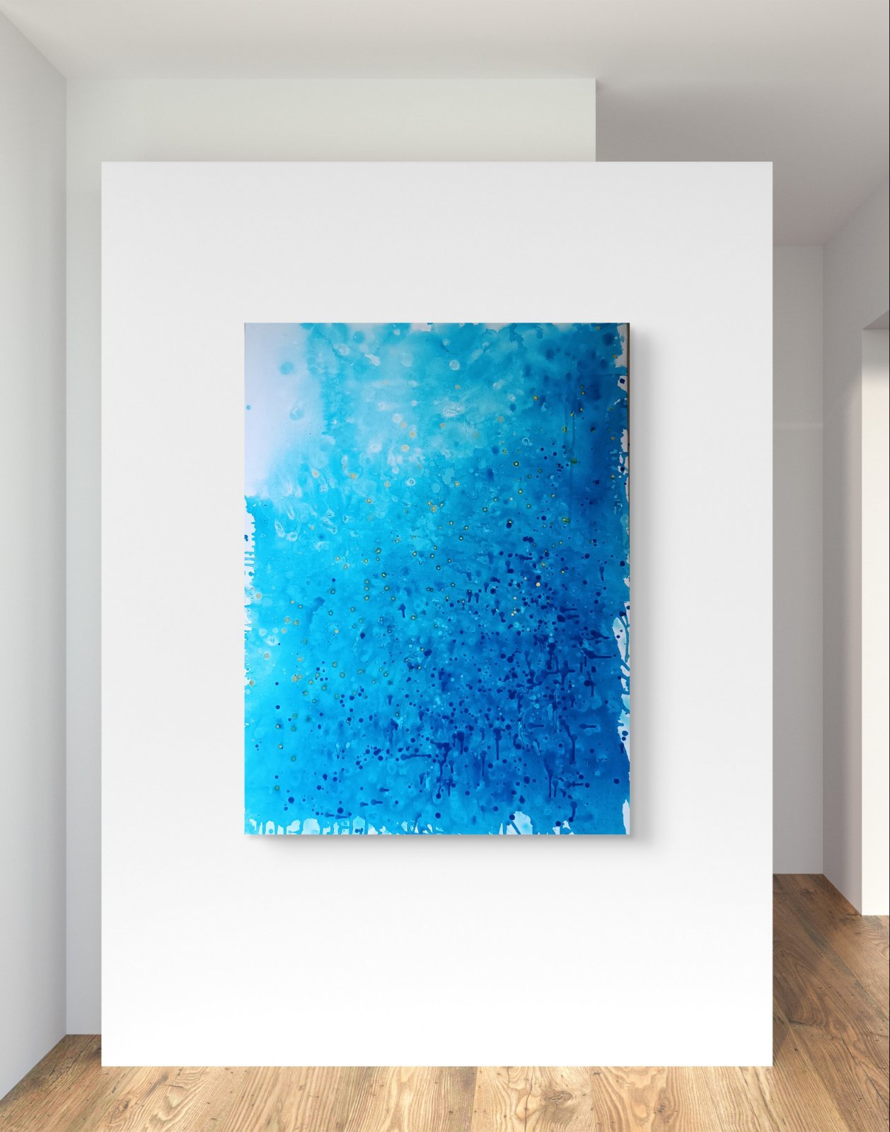 Crafted with acrylic on canvas, this medium-sized piece is a contemporary abstract seascape that will enhance any environment. Its minimalist style and calming blue tones make it ideal for creating a peaceful and sophisticated atmosphere in homes, offices, hotels, or meditation spaces. Perfect for art collectors and ocean lovers, this artwork adds a touch of modern elegance to your decor.