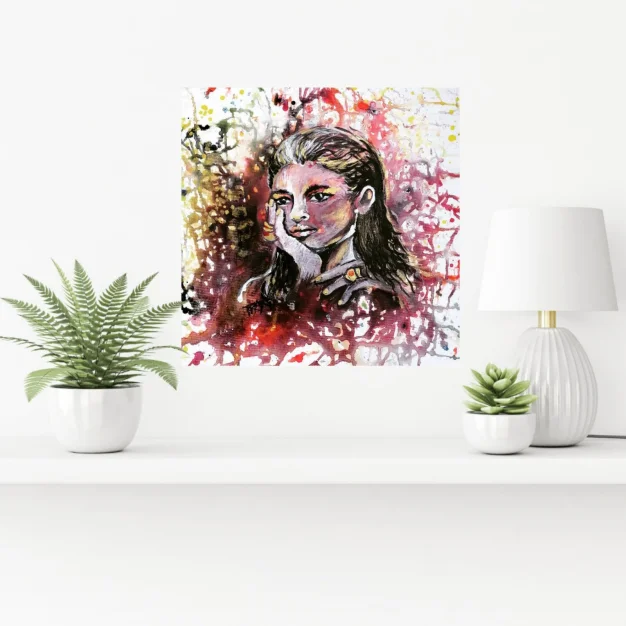 • Style: Abstract portrait with bold splatter and drip effects