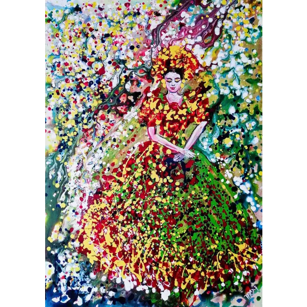 Goddess of Spring - Acrylic Painting of a Woman in a Colorful Dress