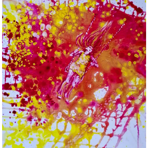 Experience the warmth and energy of summer with this stunning abstract painting, featuring a girl swinging freely under the sun. The vibrant colors of red, yellow, and white radiate joy, reflecting the carefree spirit of the season. The painting evokes a sense of movement, freedom, and happiness, as the girl swings with her hair blowing in the wind, capturing the essence of sunshine and the joy of life.