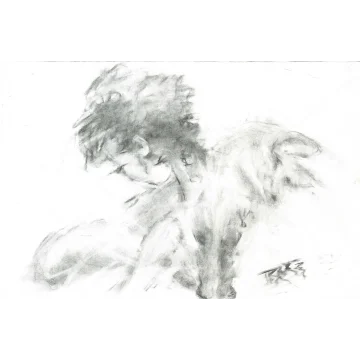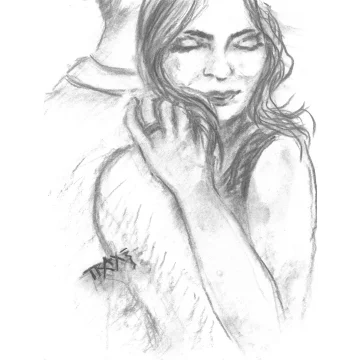 Dreamy Melancholia: Black and White Pencil Sketch Big Eyes in Black and White Charcoal