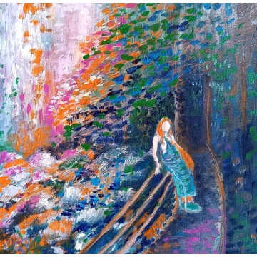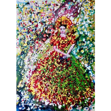 Traditional Bulgarian Woman in Colorful Nature: Abstract Painting on Palette
