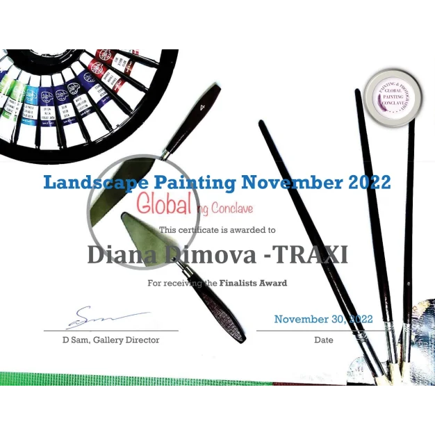 2022 Diana Dimova-TRAXI Premio Finalista nel concorso Pittura di Paesaggio Novembre 2022.