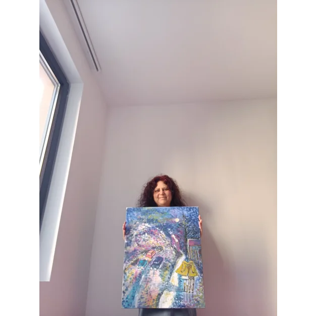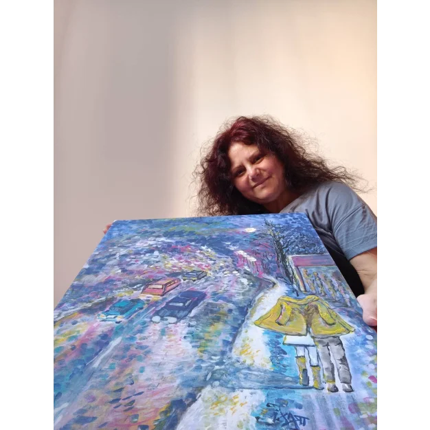 Questa pittura è una storia su una meravigliosa serata invernale quando io e mio marito stavamo passeggiando in città.