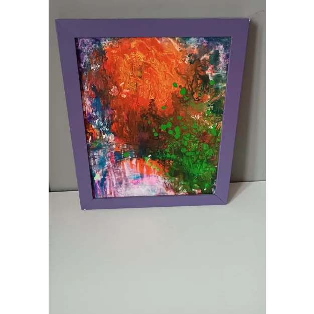 Vivi la bellezza serena di un "Tramonto Silenzioso" con questa affascinante pittura astratta. Quest'opera d'arte metafisica cattura un tramonto mozzafiato su un corpo d'acqua, mescolando colori rossi e verdi vibranti con blob intricati e lucenti e vernice viscosa simile a un arcobaleno. La scena è piena di colore e vita, riflettendo la magia di un tramonto romantico che scende in un lago tranquillo.
